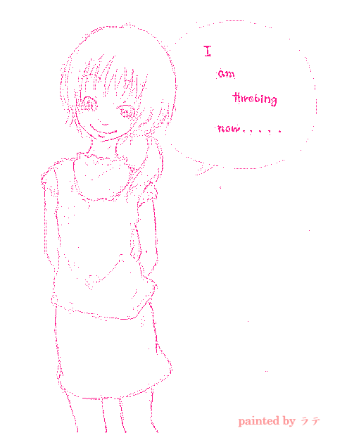 吹き出しで書いてある文字は『I am throbing now...』です。 意味は忘れました(適当) ハイ、これはDグレのティムキャンピーですね。 なんかいろいろ間違ってる。ってかキャラが違うよ!! 妹と何も見ずにティムを描こう! ってな感じに描いた結果がコレです。 しかも何気に妹の方がワンランク上だ・・・!(色々間違ってるけど) Dグレファンの方々、すみませんでした・・・(汗