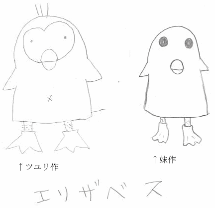 何も参考なしでキャラクターを描いてみよう!第3弾!! えー、銀魂のエリザベスさんですね。 雰囲気は何となく伝わってくるけど、もういろいろ取り返しのつかないことに・・・。 っていうか足を2人とも強調しすぎだから・・・!! あたしが描いた方はもうペンギンにもおっさんにもなりきれない可哀想な生き物だよ(爆) 正解例↓ ↓ ↓ ↓ このなにも考えてなさそうな感じがたまらなく好きだ!! (なんか正解例も微妙だ・・・)
