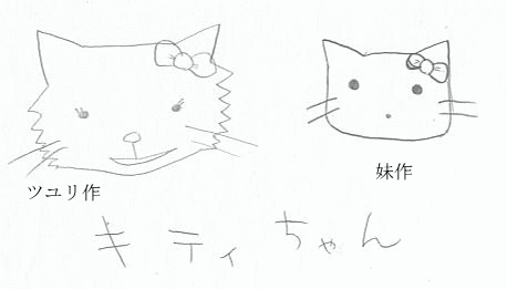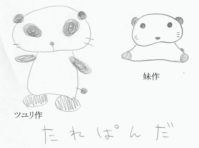 何も参考なしでキャラクターを描いてみよう!第6弾!! ハローキティです。 まあ前回のよりははるかに良い代物。 でもあたしに至っては何か種類違う。 何も参考なしでキャラクターを描いてみよう!第7弾!! なつかしのたれぱんだ。 左はヤクザっぽくて、右はお正月に飾ってありあそうな置物っぽい。 ってゆうかあたし何で尻尾があんな感じに・・・。